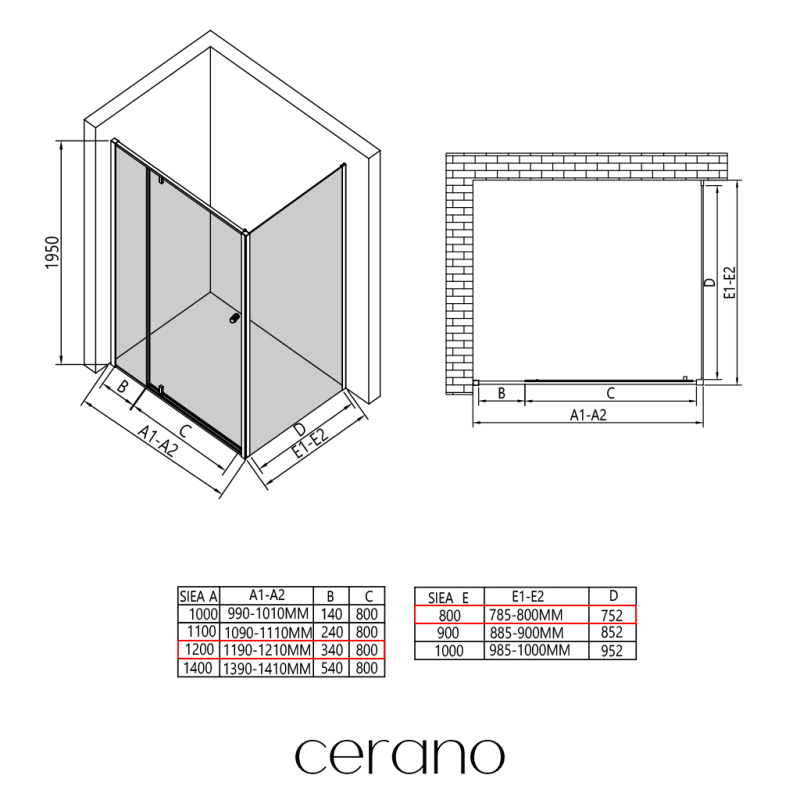 V rámci této série nabízíme širokou škálu rozměrů, abychom uspokojili různé potřeby našich zákazníků. Všechny sprchové kouty, dveře a zástěny značky CERANO jsou plně kompatibilní se sprchovými vaničkami CERANO ve stejných rozměrech, což zajišťuje bezproblémovou instalaci a dokonalé sladění. Sprchový kout lze navíc instalovat flexibilně – buď na odpovídající sprchovou vaničku, nebo přímo na podlahu podle vašich preferencí a možností koupelny.