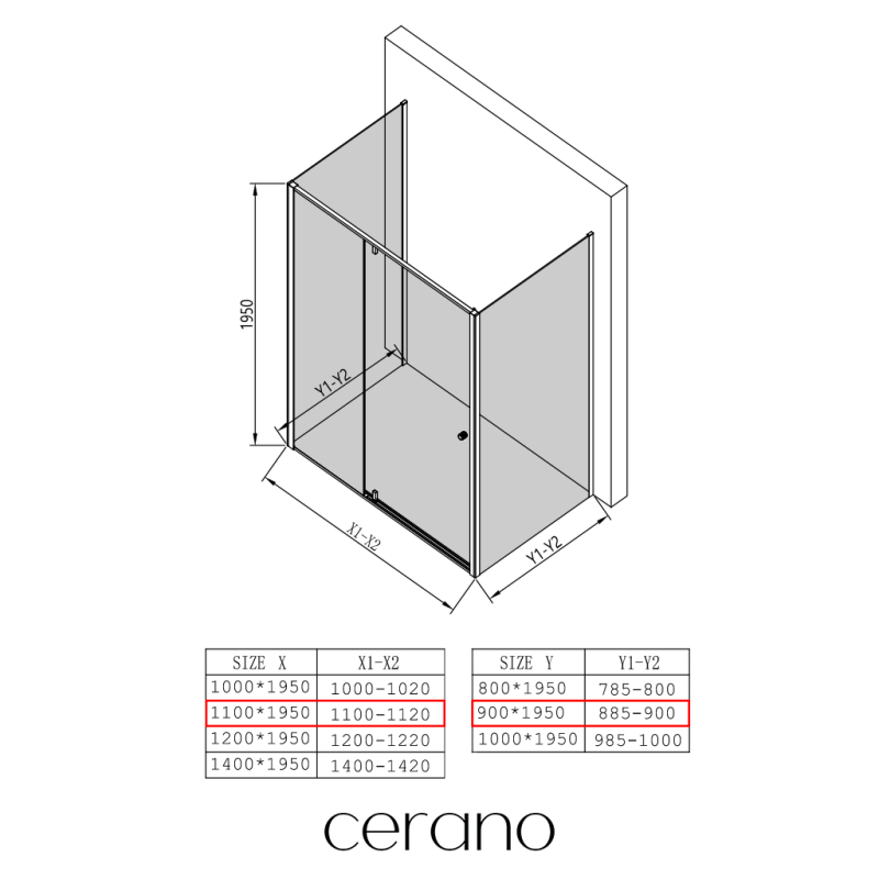 V rámci této série nabízíme širokou škálu rozměrů, abychom uspokojili různé potřeby našich zákazníků. Většina sprchových koutů, dveří a zástěn značky CERANO je navržena tak, aby byla kompatibilní se sprchovými vaničkami CERANO ve stejných rozměrech, což zajišťuje bezproblémovou instalaci a dokonalé sladění.