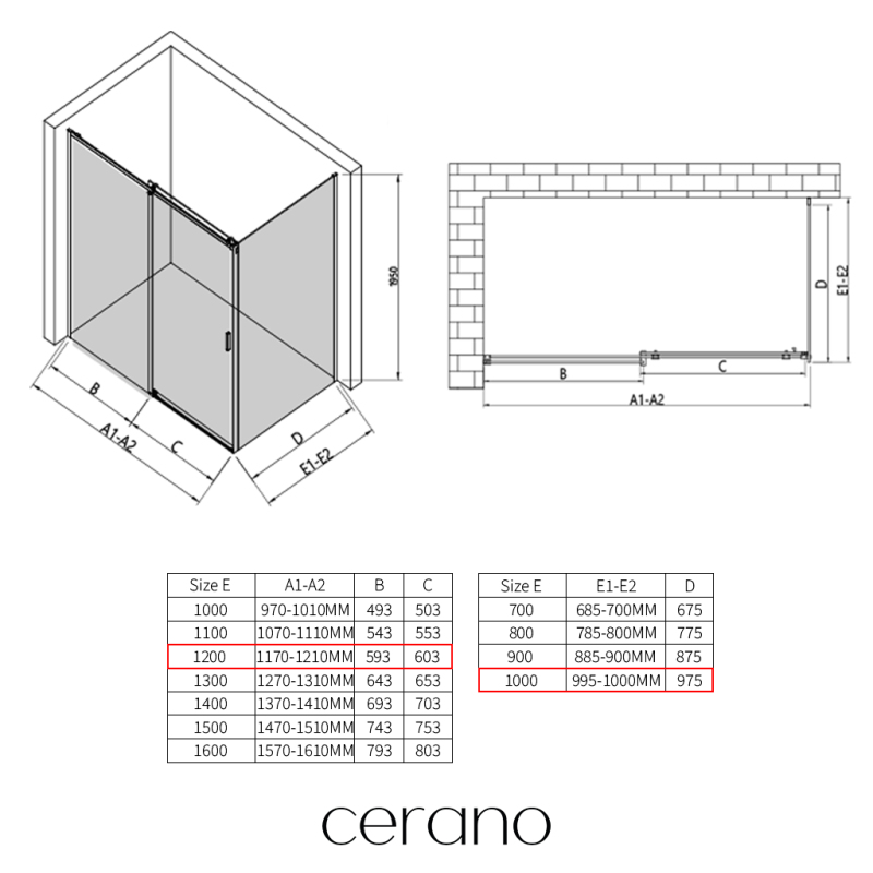 V rámci této série nabízíme širokou škálu rozměrů, abychom uspokojili různé potřeby našich zákazníků. Všechny sprchové kouty, dveře a zástěny značky CERANO jsou plně kompatibilní se sprchovými vaničkami CERANO ve stejných rozměrech, což zajišťuje bezproblémovou instalaci a dokonalé sladění. Sprchový kout lze navíc instalovat flexibilně – buď na odpovídající sprchovou vaničku, nebo přímo na podlahu podle vašich preferencí a možností koupelny.