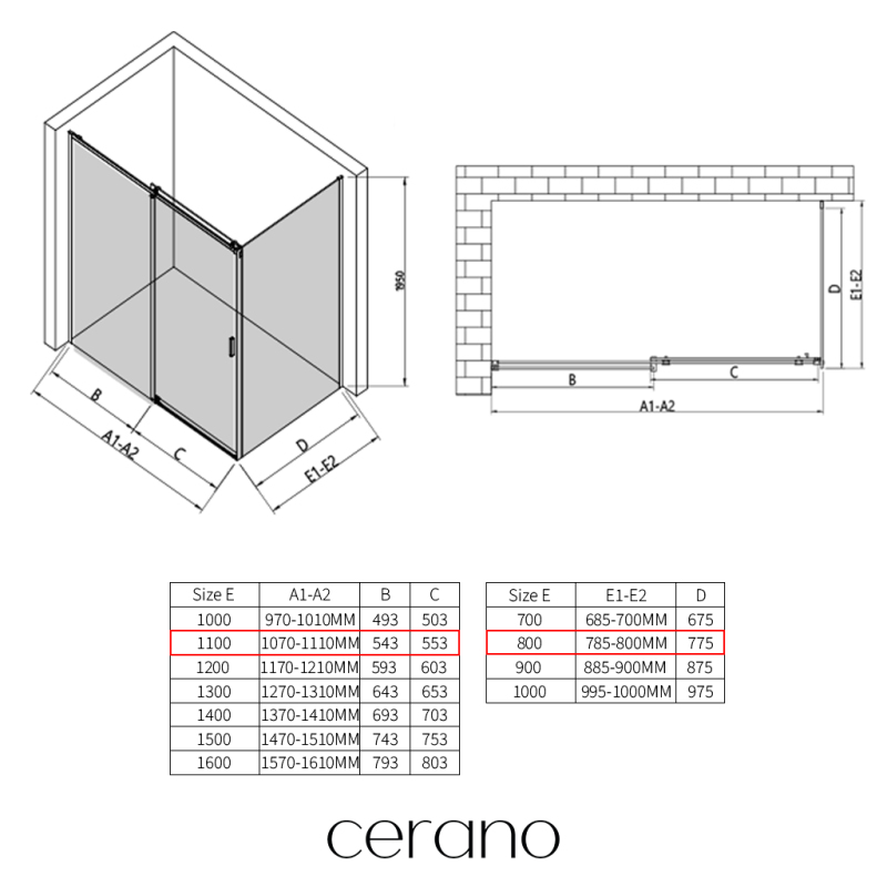 V rámci této série nabízíme širokou škálu rozměrů, abychom uspokojili různé potřeby našich zákazníků. Všechny sprchové kouty, dveře a zástěny značky CERANO jsou plně kompatibilní se sprchovými vaničkami CERANO ve stejných rozměrech, což zajišťuje bezproblémovou instalaci a dokonalé sladění. Sprchový kout lze navíc instalovat flexibilně – buď na odpovídající sprchovou vaničku, nebo přímo na podlahu podle vašich preferencí a možností koupelny.