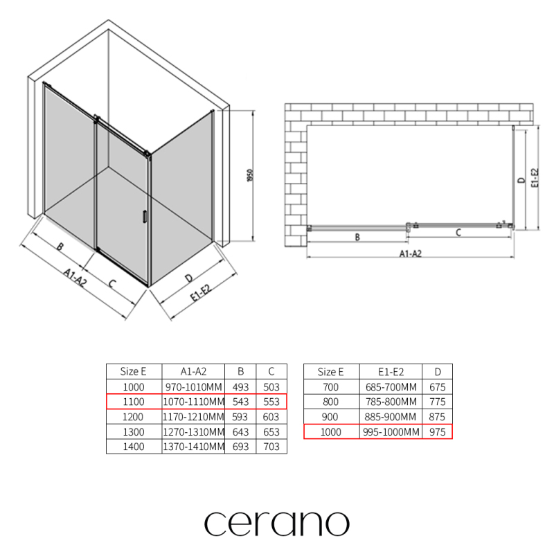 V rámci této série nabízíme širokou škálu rozměrů, abychom uspokojili různé potřeby našich zákazníků. Všechny sprchové kouty, dveře a zástěny značky CERANO jsou plně kompatibilní se sprchovými vaničkami CERANO ve stejných rozměrech, což zajišťuje bezproblémovou instalaci a dokonalé sladění. Sprchový kout lze navíc instalovat flexibilně – buď na odpovídající sprchovou vaničku, nebo přímo na podlahu podle vašich preferencí a možností koupelny.