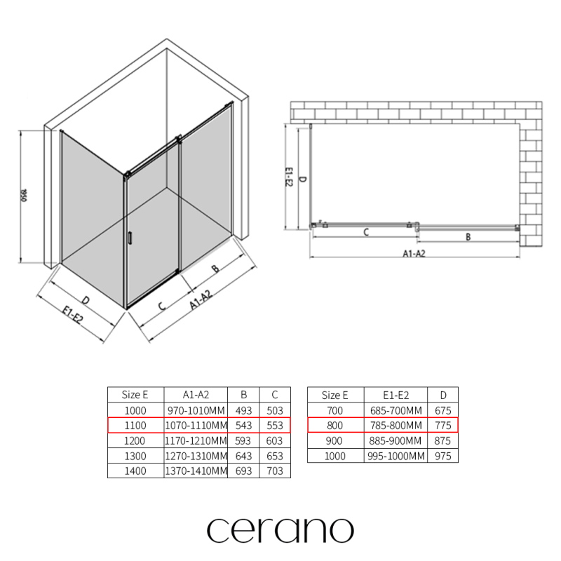 V rámci této série nabízíme širokou škálu rozměrů, abychom uspokojili různé potřeby našich zákazníků. Všechny sprchové kouty, dveře a zástěny značky CERANO jsou plně kompatibilní se sprchovými vaničkami CERANO ve stejných rozměrech, což zajišťuje bezproblémovou instalaci a dokonalé sladění. Sprchový kout lze navíc instalovat flexibilně – buď na odpovídající sprchovou vaničku, nebo přímo na podlahu podle vašich preferencí a možností koupelny.