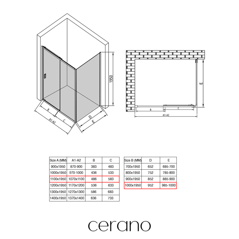 V rámci této série nabízíme širokou škálu rozměrů, abychom uspokojili různé potřeby našich zákazníků. Všechny sprchové kouty, dveře a zástěny značky CERANO jsou plně kompatibilní se sprchovými vaničkami CERANO ve stejných rozměrech, což zajišťuje bezproblémovou instalaci a dokonalé sladění. Sprchový kout lze navíc instalovat flexibilně – buď na odpovídající sprchovou vaničku, nebo přímo na podlahu podle vašich preferencí a možností koupelny.