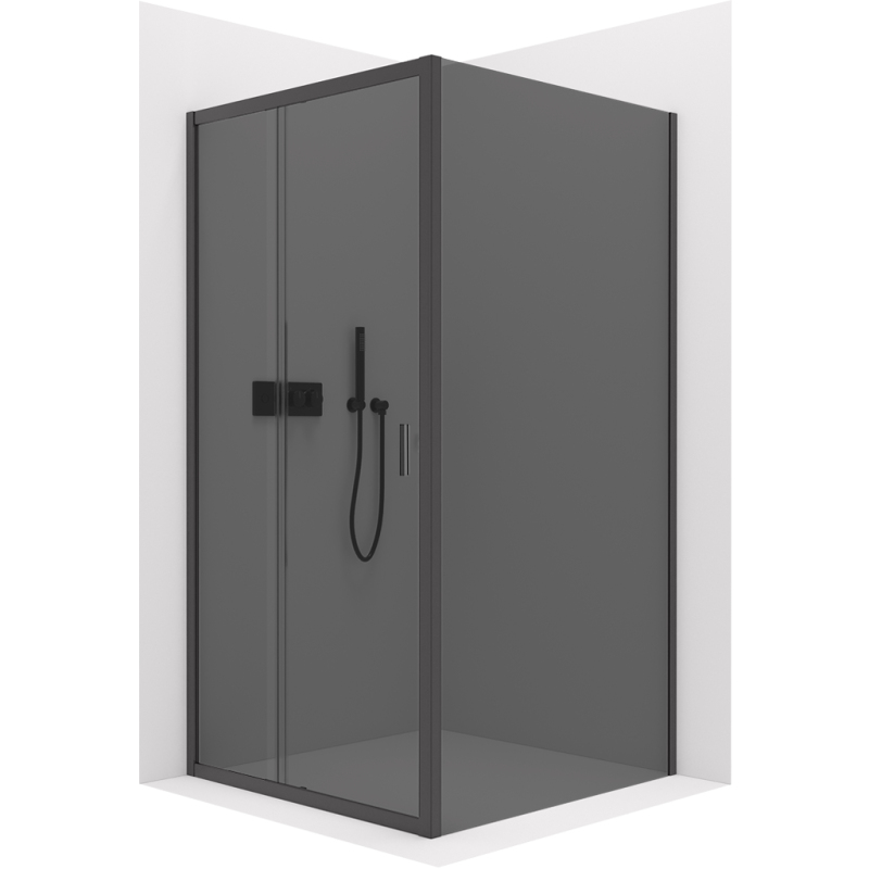 CERANO - Sprchový kout Varone LINE L/P - 6 mm - černá matná, grafitové sklo - 140x90x195 cm - posuvný