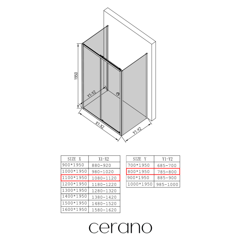 V rámci této série nabízíme širokou škálu rozměrů, abychom uspokojili různé potřeby našich zákazníků. Všechny sprchové kouty, dveře a zástěny značky CERANO jsou plně kompatibilní se sprchovými vaničkami CERANO ve stejných rozměrech, což zajišťuje bezproblémovou instalaci a dokonalé sladění. Sprchový kout lze navíc instalovat flexibilně – buď na odpovídající sprchovou vaničku, nebo přímo na podlahu podle vašich preferencí a možností koupelny.