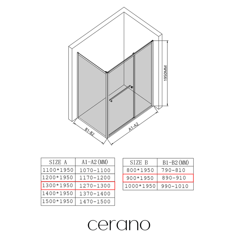 CERANO - Sprchový kout Versaro L/P - 6 mm - černá matná, transparentní sklo - 130x90 cm - křídlový