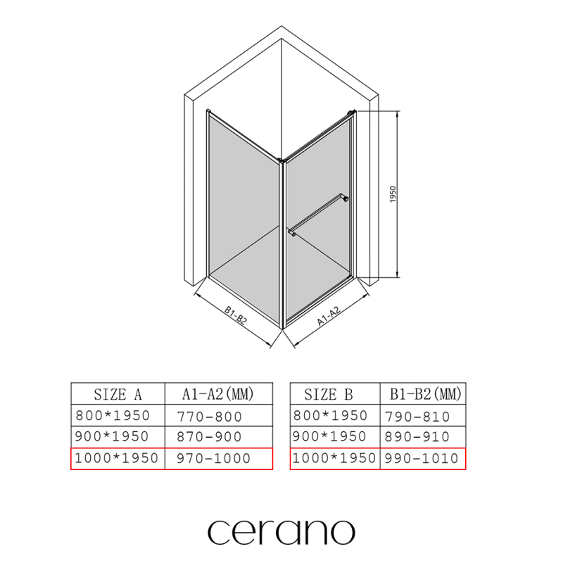 V rámci této série nabízíme širokou škálu rozměrů, abychom uspokojili různé potřeby našich zákazníků. Všechny sprchové kouty, dveře a zástěny značky CERANO jsou plně kompatibilní se sprchovými vaničkami CERANO ve stejných rozměrech, což zajišťuje bezproblémovou instalaci a dokonalé sladění. Sprchový kout lze navíc instalovat flexibilně – buď na odpovídající sprchovou vaničku, nebo přímo na podlahu podle vašich preferencí a možností koupelny.