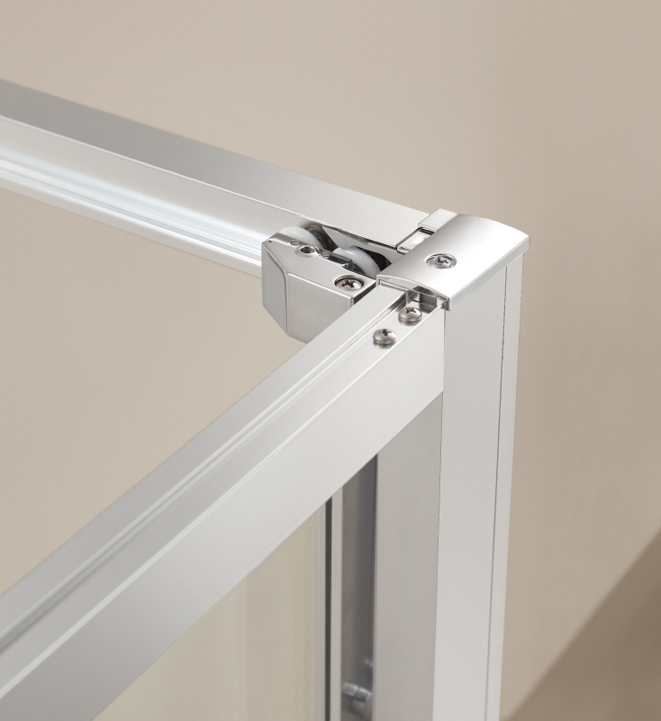 Zasouvací dveře se inovativním způsobem zasouvají dovnitř sprchového koutu, čímž vzniká velký vstupní prostor. Díky tomu dveře nezasahují do prostoru koupelny. Jde o velmi vhodné řešení i pro malé koupelny.