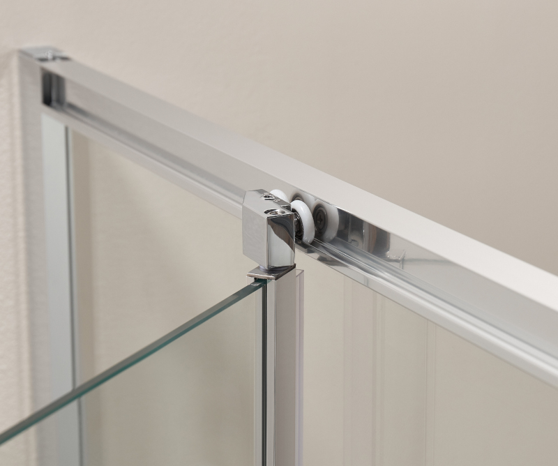 Zasouvací dveře se inovativním způsobem zasouvají dovnitř sprchového koutu, čímž vzniká velký vstupní prostor. Díky tomu dveře nezasahují do prostoru koupelny. Jde o velmi vhodné řešení i pro malé koupelny.