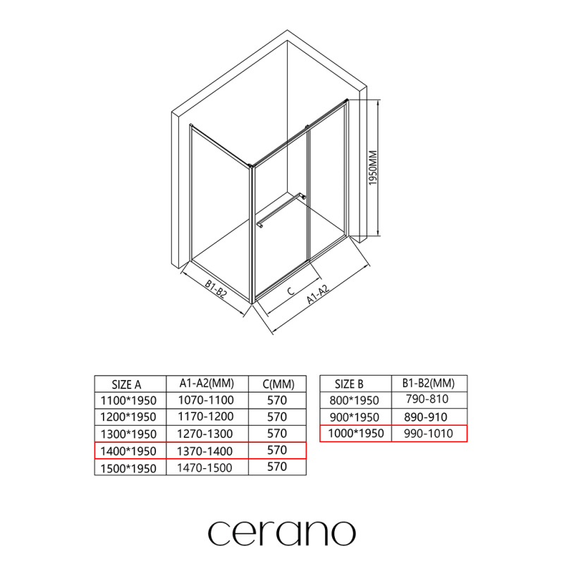 V rámci této série nabízíme širokou škálu rozměrů, abychom uspokojili různé potřeby našich zákazníků. Všechny sprchové kouty, dveře a zástěny značky CERANO jsou plně kompatibilní se sprchovými vaničkami CERANO ve stejných rozměrech, což zajišťuje bezproblémovou instalaci a dokonalé sladění. Sprchový kout lze navíc instalovat flexibilně – buď na odpovídající sprchovou vaničku, nebo přímo na podlahu podle vašich preferencí a možností koupelny.