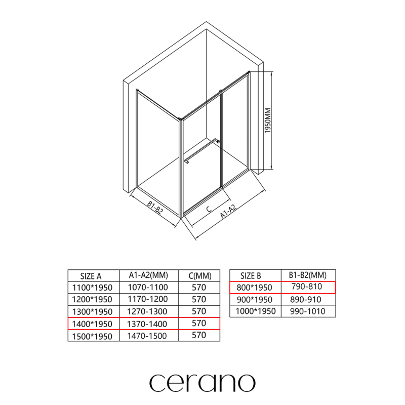 V rámci této série nabízíme širokou škálu rozměrů, abychom uspokojili různé potřeby našich zákazníků. Všechny sprchové kouty, dveře a zástěny značky CERANO jsou plně kompatibilní se sprchovými vaničkami CERANO ve stejných rozměrech, což zajišťuje bezproblémovou instalaci a dokonalé sladění. Sprchový kout lze navíc instalovat flexibilně – buď na odpovídající sprchovou vaničku, nebo přímo na podlahu podle vašich preferencí a možností koupelny.