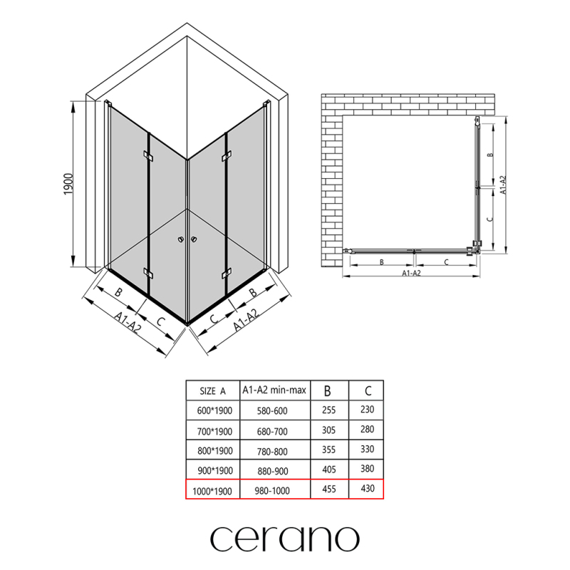 V rámci této série nabízíme širokou škálu rozměrů, abychom uspokojili různé potřeby našich zákazníků. Všechny sprchové kouty, dveře a zástěny značky Cerano jsou plně kompatibilní se sprchovými vaničkami Cerano ve stejných rozměrech, což zajišťuje bezproblémovou instalaci a dokonalé sladění. Sprchový kout lze navíc instalovat flexibilně – buď na odpovídající sprchovou vaničku, nebo přímo na podlahu podle vašich preferencí a možností koupelny.