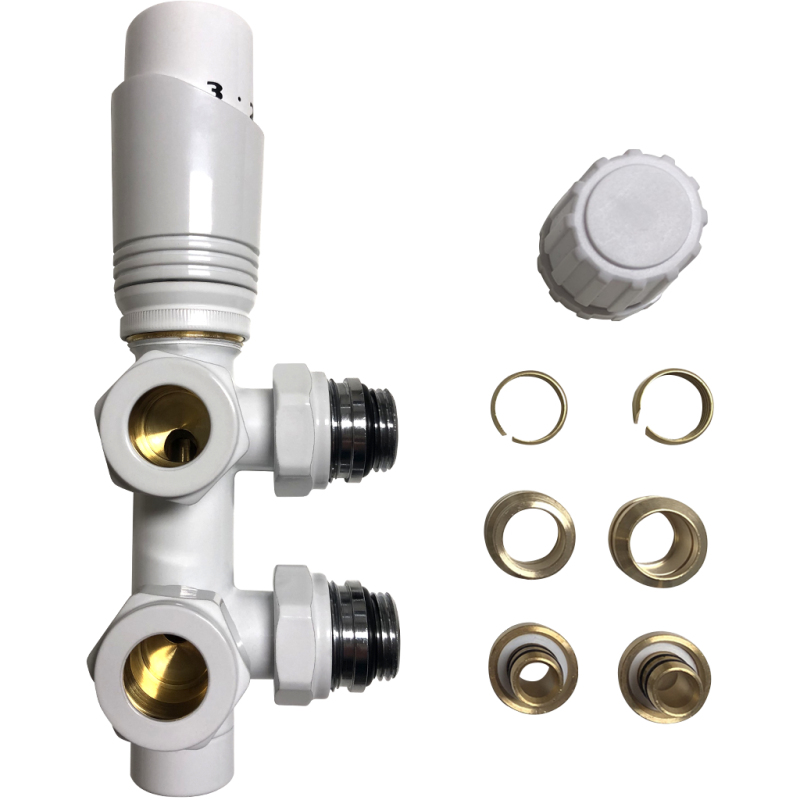 - Spojuje přívod a zpátečku (tedy oba otvory radiátoru) do jednoho kompaktního kusu.