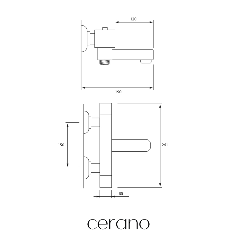 CERANO - Vanová nástěnná baterie Lorena - termostatická - otočný výtok - chrom