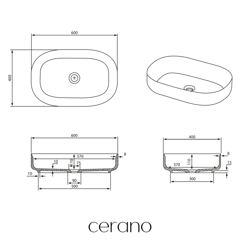 CERANO - Umyvadlo z litého mramoru Atria - na desku - bílá matná - 60x40 cm