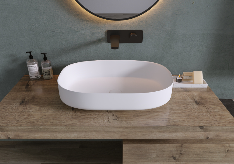 Matný povrch umyvadel světlo neodráží a tak poskytuje klidnější a uvolněnější atmosféru, což dává nenápadný, ale elegantní design. Tento povrch je praktický, protože na něm nejsou tak viditelné otisky prstů a vodní skvrny a následná údržba a udržování čistoty je tak mnohem snažší.
