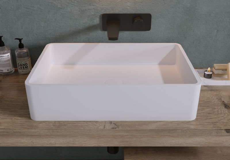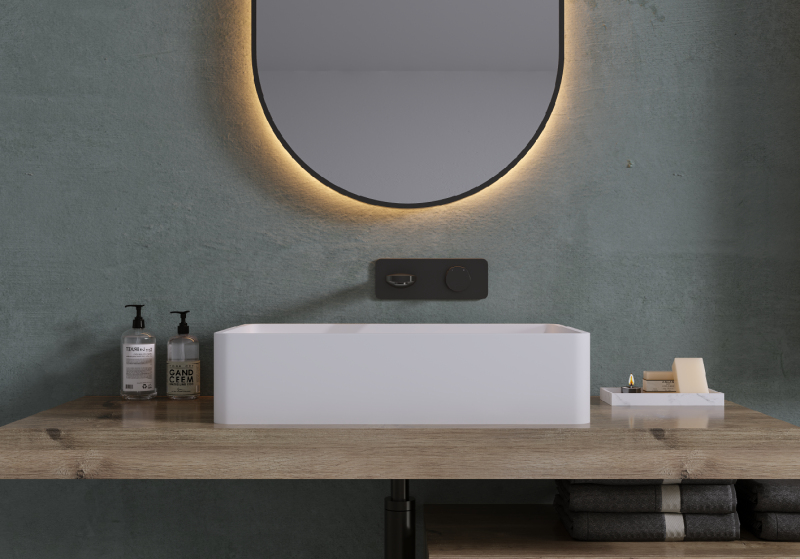 Matný povrch umyvadel světlo neodráží a tak poskytuje klidnější a uvolněnější atmosféru, což dává nenápadný, ale elegantní design. Tento povrch je praktický, protože na něm nejsou tak viditelné otisky prstů a vodní skvrny a následná údržba a udržování čistoty je tak mnohem snažší.