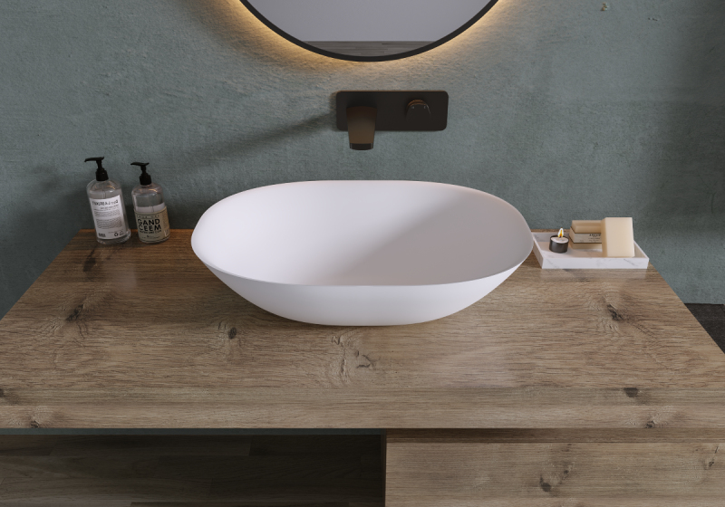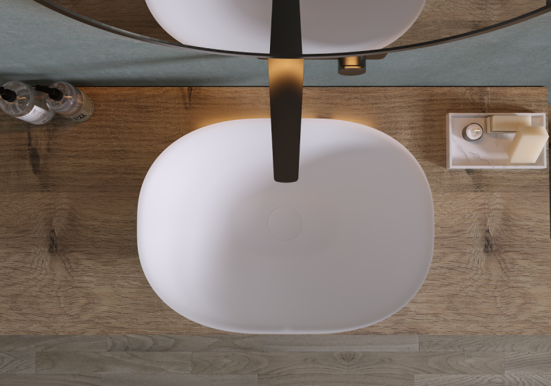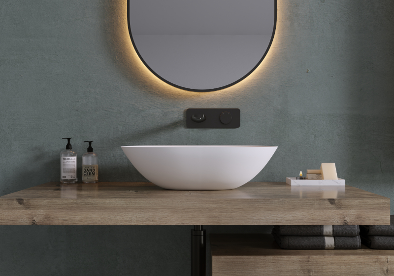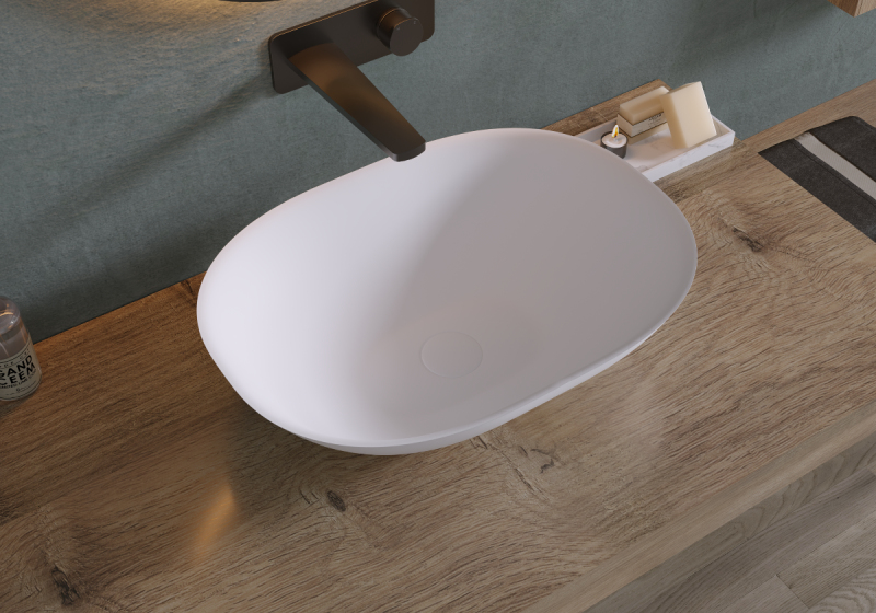 Matný povrch umyvadel světlo neodráží a tak poskytuje klidnější a uvolněnější atmosféru, což dává nenápadný, ale elegantní design. Tento povrch je praktický, protože na něm nejsou tak viditelné otisky prstů a vodní skvrny a následná údržba a udržování čistoty je tak mnohem snažší.