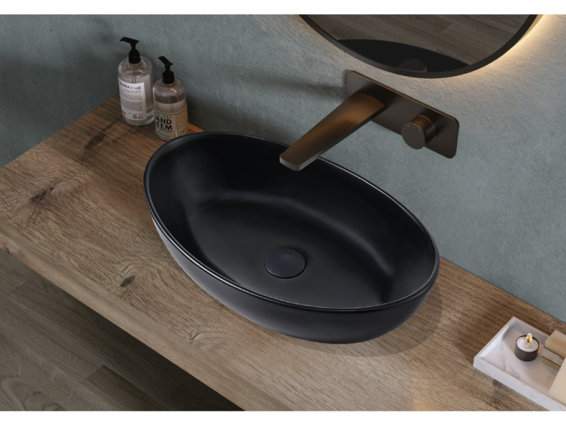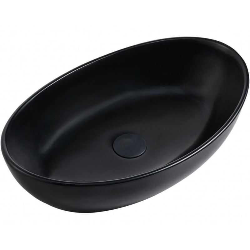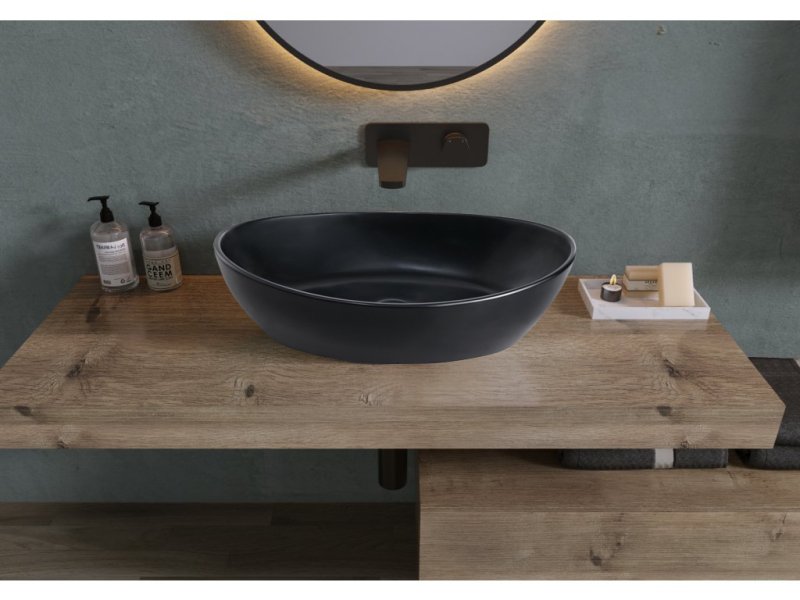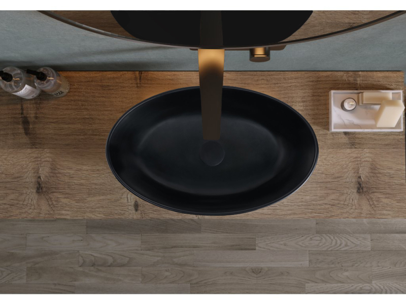 CERANO - Umyvadlo z litého mramoru Luna - na desku - černá matná - 52,8x30,9 cm