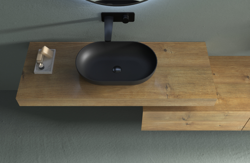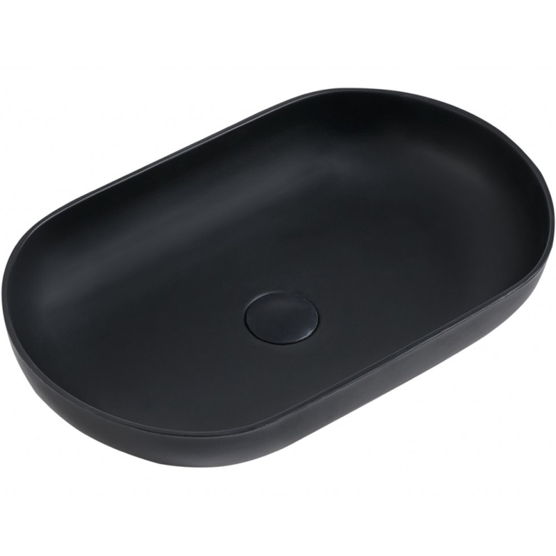CERANO - Umyvadlo z litého mramoru Lyra - na desku - černá matná - 54x34 cm
