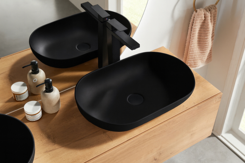 Matný povrch umyvadel světlo neodráží a tak poskytuje klidnější a uvolněnější atmosféru, což dává nenápadný, ale elegantní design. Tento povrch je praktický, protože na něm nejsou tak viditelné otisky prstů a vodní skvrny a následná údržba a udržování čistoty je tak mnohem snažší.