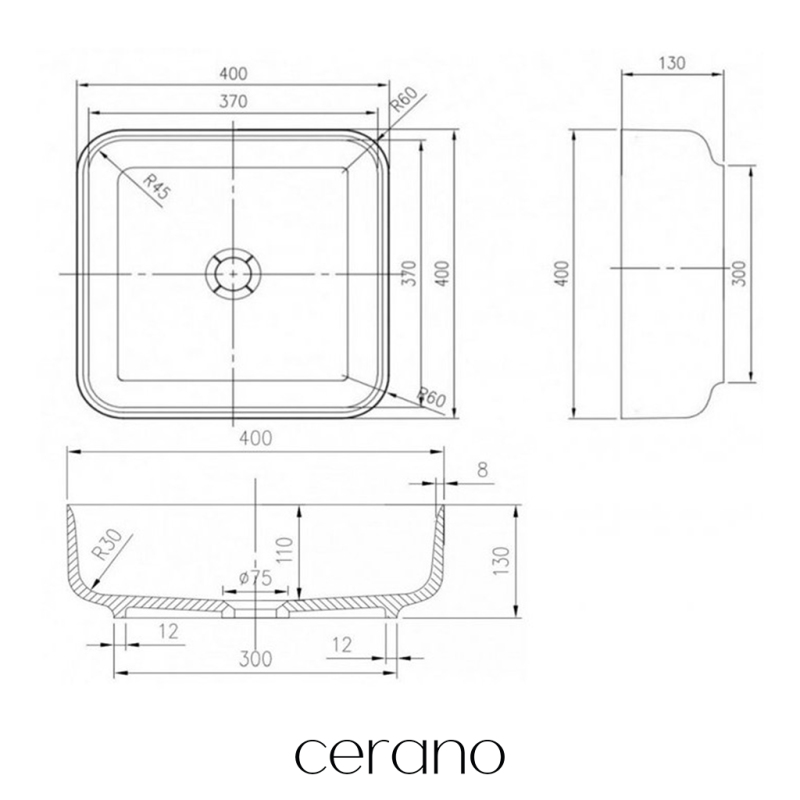 CERANO - Umyvadlo z litého mramoru Viva - na desku - bílá matná - 40x40 cm