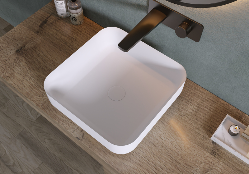 Matný povrch umyvadel světlo neodráží a tak poskytuje klidnější a uvolněnější atmosféru, což dává nenápadný, ale elegantní design. Tento povrch je praktický, protože na něm nejsou tak viditelné otisky prstů a vodní skvrny a následná údržba a udržování čistoty je tak mnohem snažší.