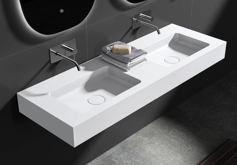 Umyvadla z litého mramoru jsou dodávána bez otvoru pro baterii. V případě potřeby si jej můžete jednoduše zhotovit sami – například vyvrtáním. Díky tomu máte možnost zvolit si umístění a typ baterie podle vlastních představ.