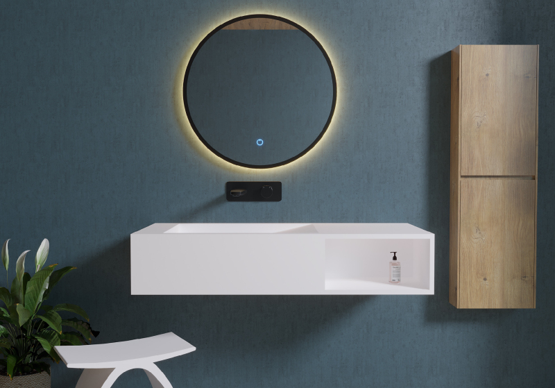 Umyvadla z litého mramoru jsou dodávána bez otvoru pro baterii. V případě potřeby si jej můžete jednoduše zhotovit sami – například vyvrtáním. Díky tomu máte možnost zvolit si umístění a typ baterie podle vlastních představ.