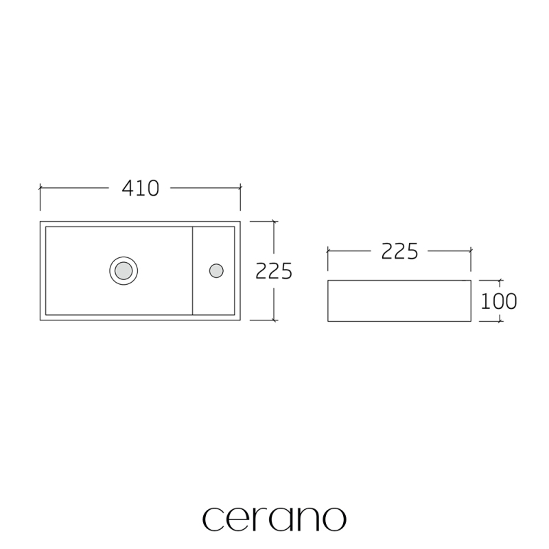 CERANO - Umyvátko keramické Giovanni, závěsné pravé - bílá lesklá - 41x22,5 cm