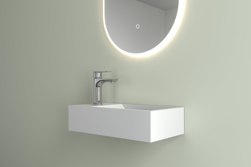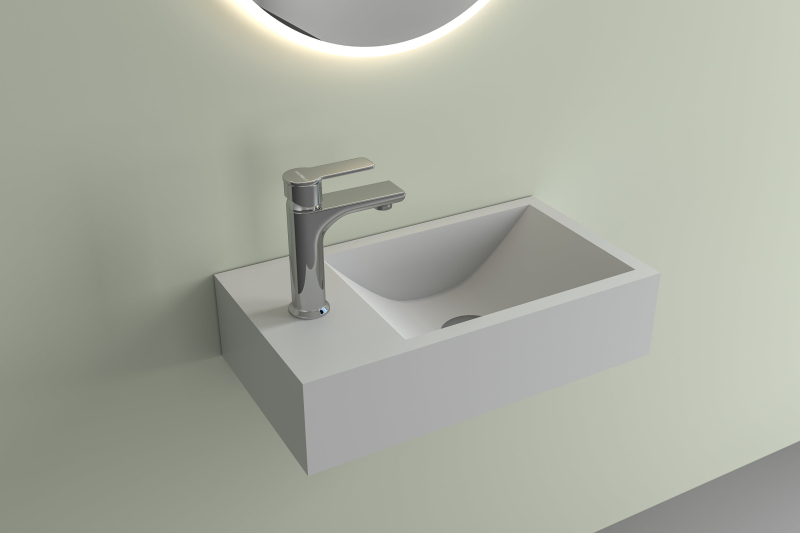 Umyvadlo disponuje otvorem pro instalaci vodovodní baterie. Tato úprava umožňuje elegantní zapuštění baterie přímo do umyvadla, což je ideální pro menší koupelny, protože výrazně šetří prostor. Zároveň se díky tomu snadněji udržuje čistota v okolí umyvadla, jelikož zde nejsou žádné výčnělky či spoje, kde by se mohla usazovat špína.