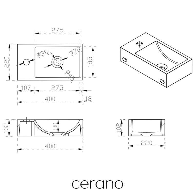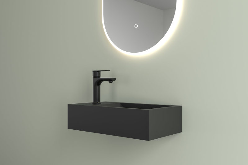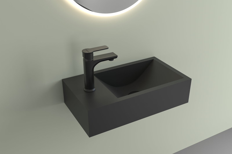 CERANO - Umývátko z litého mramoru Teo - závěsné levé - černá matná - 40x22 cm