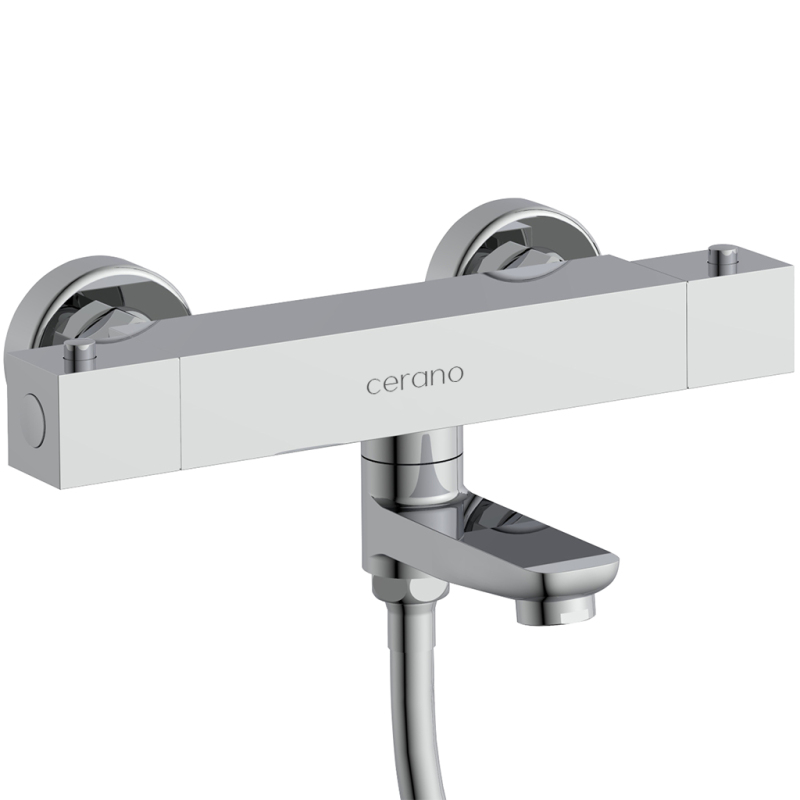 CERANO - Vanová nástěnná baterie Lorena s příslušenstvím - termostatická - otočný výtok - chrom