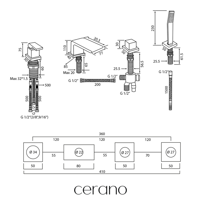 Vanová souprava Vespa značky CERANO se vyznačuje velmi elegantním designem, díky kterému se skvěle hodí do každé moderní koupelny. Je také skvělou volbou pro koupelny zařízené v duchu glamour. Baterie je vyrobená z mosazi, což je velmi kvalitní materiál zabraňující korozi a zajišťující dlouhou životnost a funkčnost celé soupravy.