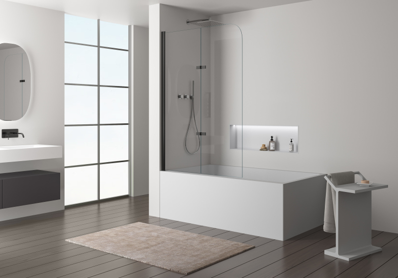 Transparentní sklo o tloušťce 6 mm dodává koupelně vzdušný a moderní vzhled, zároveň propouští dostatek světla do prostoru. Černý profil zajišťuje vynikající kontrast k transparentnímu sklu a dodává vanové zástěně moderní a sofistikovaný vzhled. Tento stylový prvek dokonale ladí s různými designovými koncepcemi koupelen.