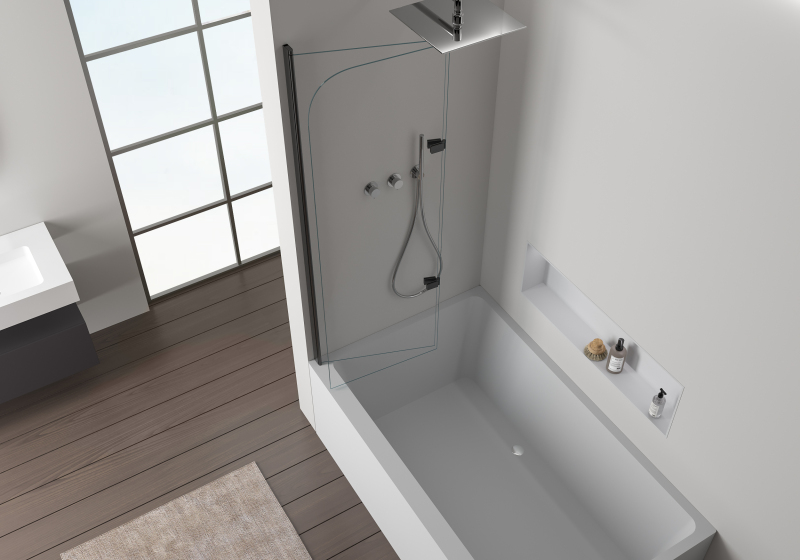 Zástěna je vyrobena ze dvou křídel s možností skládání. Toto řešení šetří místa v koupelně a umožňuje vám volně využívat zbývající prostor, pokud právě neužíváte koupací oblast.