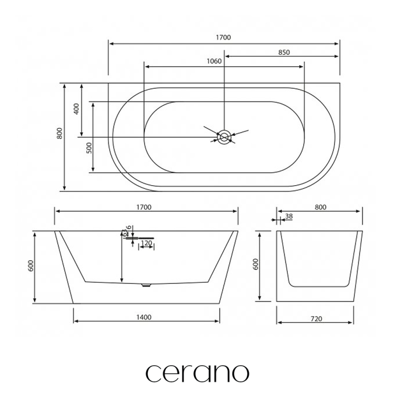 CERANO - Volně stojící akrylátová vana Grazia - bílá lesklá - 170x80 cm