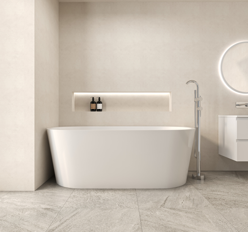 Sanitární akrylát (PMMA) má přirozeně teplý povrch a výborně udržuje teplotu vody, takže voda ve vaně chladne pomaleji než u kovových van. Akrylátové vany jsou výrazně lehčí než ocelové nebo litinové. Materiál je zcela neporézní, odolává usazování nečistot, vodního kamene a bakterií a je rezistentní vůči běžným čisticím prostředkům. Drobné škrábance lze snadno přeleštit.