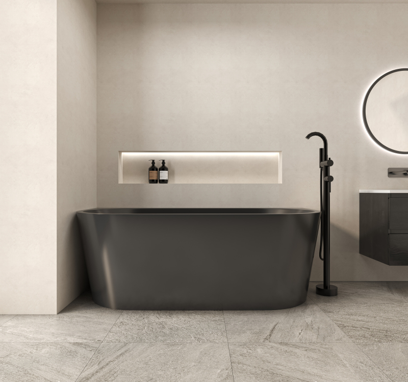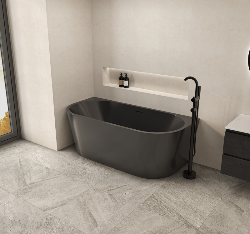 CERANO - Volně stojící akrylátová vana Grazia - černá matná - 170x80 cm