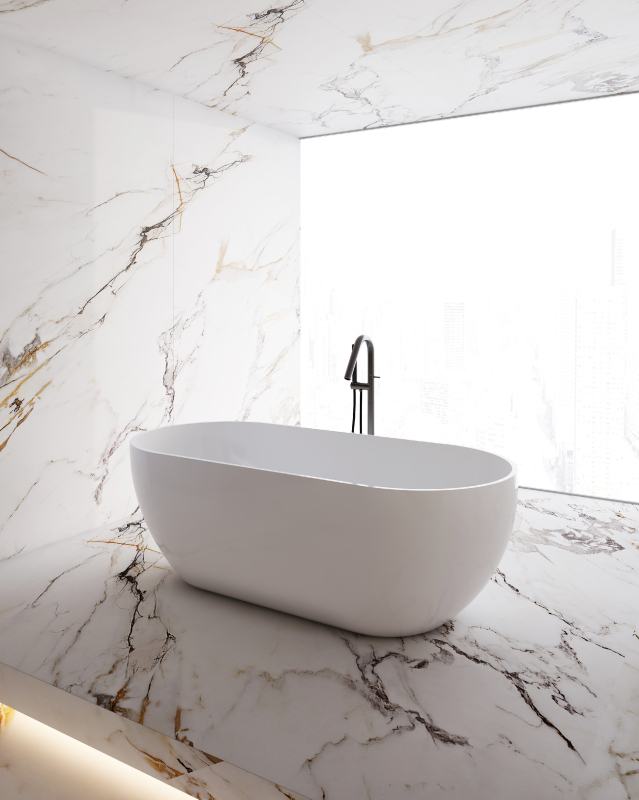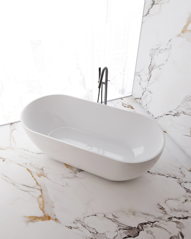 Sanitární akrylát (PMMA) má přirozeně teplý povrch a výborně udržuje teplotu vody, takže voda ve vaně chladne pomaleji než u kovových van. Akrylátové vany jsou výrazně lehčí než ocelové nebo litinové. Materiál je zcela neporézní, odolává usazování nečistot, vodního kamene a bakterií a je rezistentní vůči běžným čisticím prostředkům. Drobné škrábance lze snadno přeleštit.