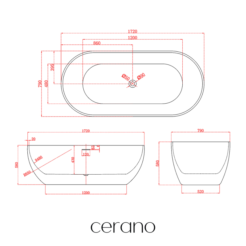 CERANO - Volně stojící akrylátová vana Menora - bílá lesklá - 172x79 cm