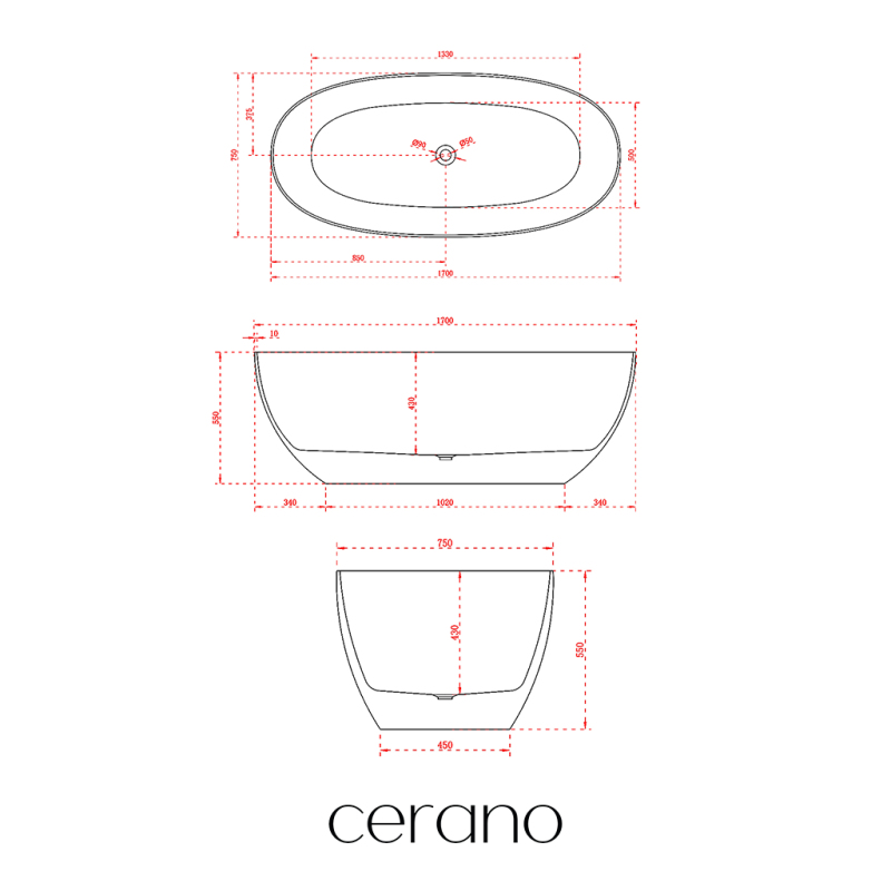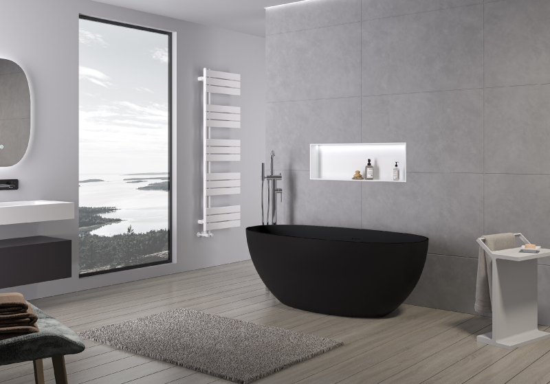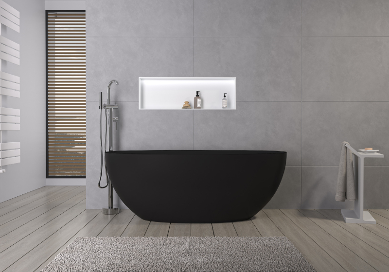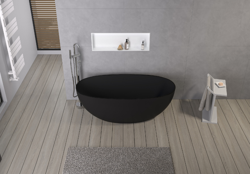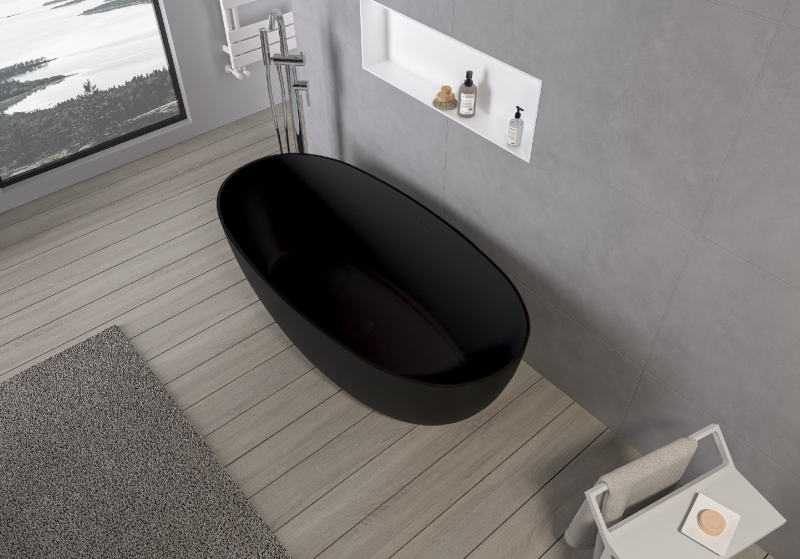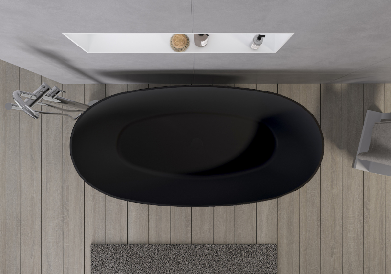 CERANO - Volně stojící vana z litého mramoru Antonia - černá matná - 170x75cm