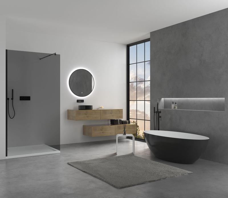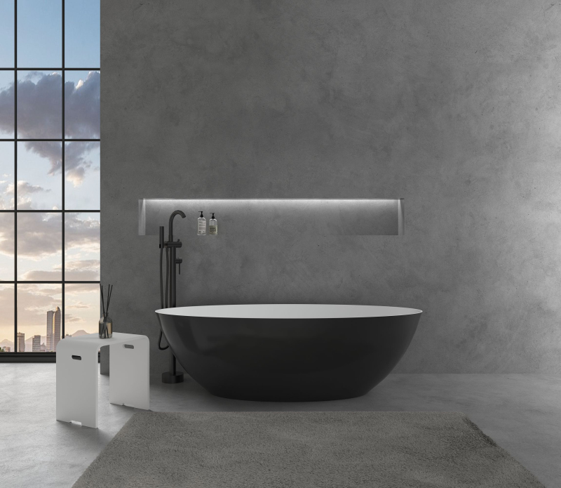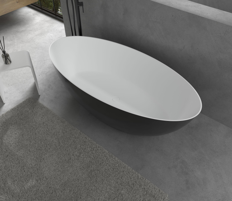 CERANO - Volně stojící vana z litého mramoru Emilia - černá matná/bílá matná - 180x85cm