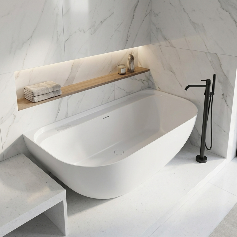 CERANO - Volně stojící vana z litého mramoru Valeria - bílá matná - 150x80 cm