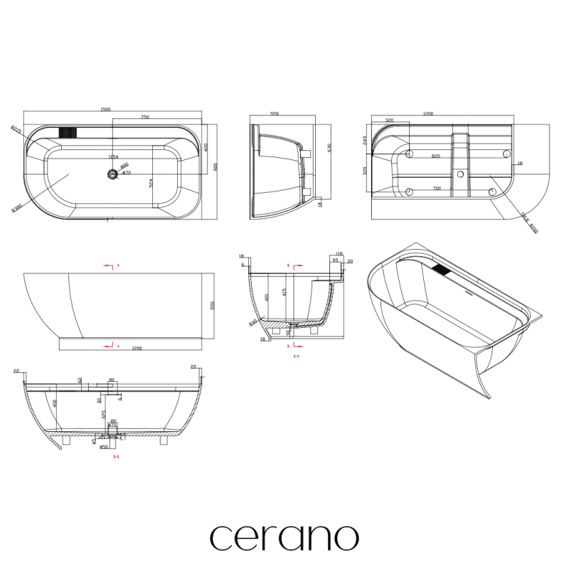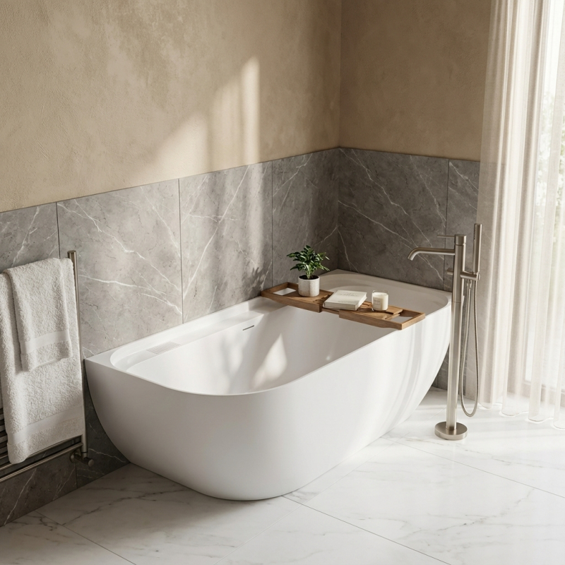 CERANO - Volně stojící vana z litého mramoru Valeria, pravá - bílá matná - 150x80 cm