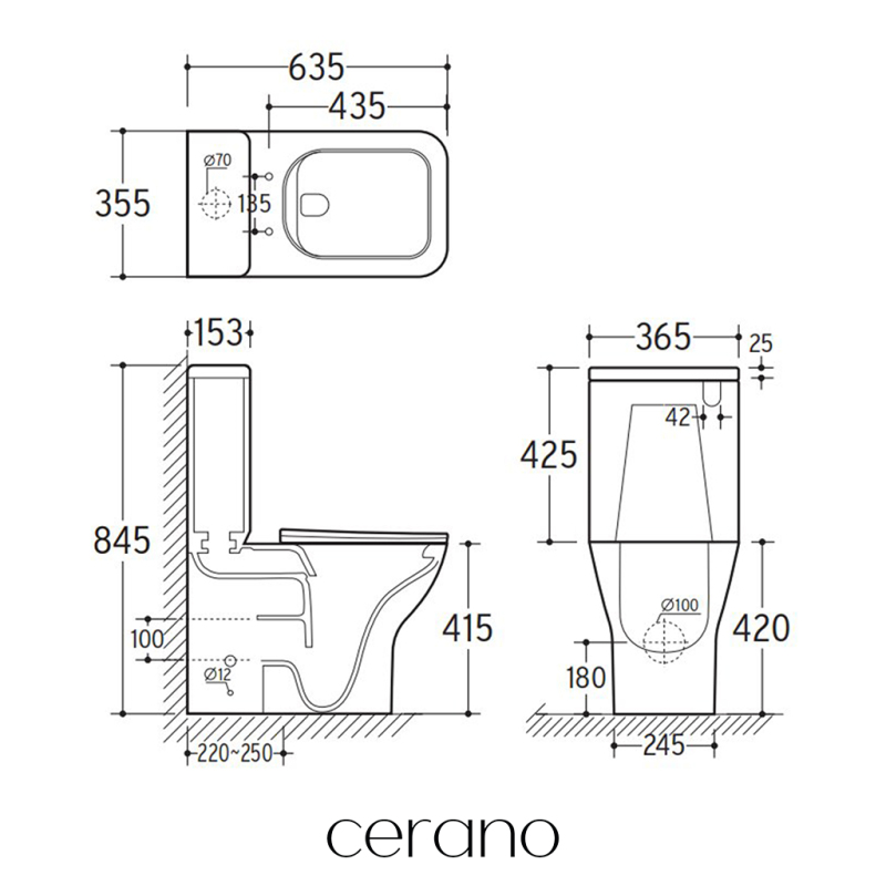 CERANO - WC kombi Carlito, Rimless + Slim/UF sedátko - spodní/zadní odpad - černá matná - 61x36,5 cm