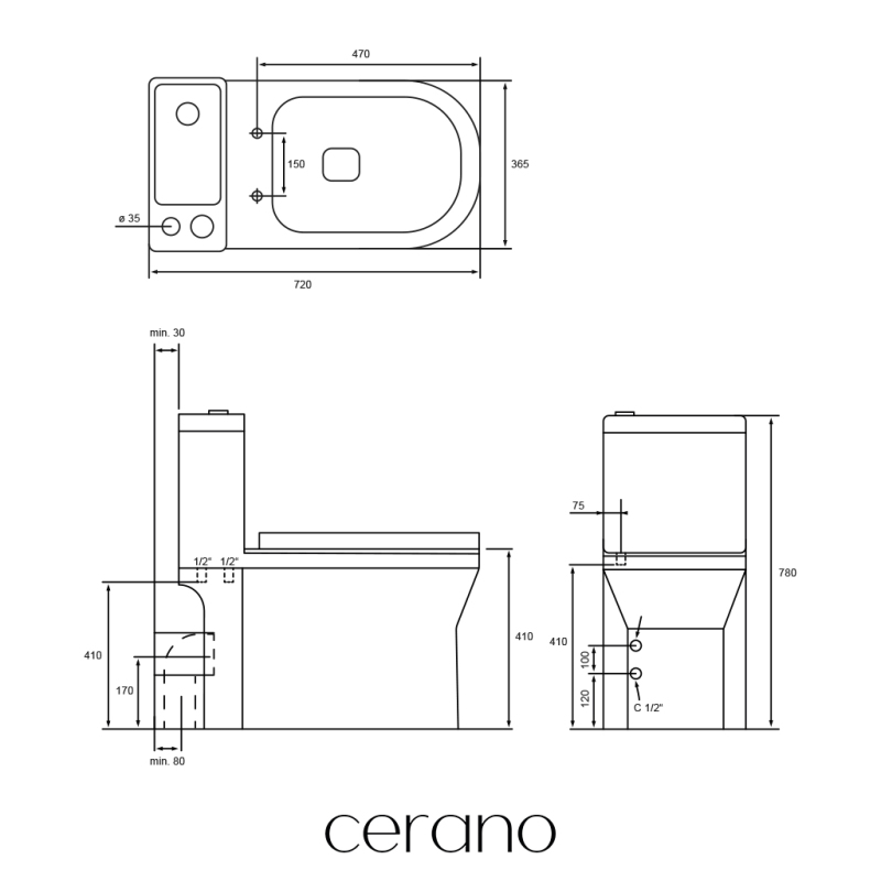 CERANO WC kombi Carlito, Rimless+UF sedátko/zadní odpad černá matná 36,5x61cm CER-433866