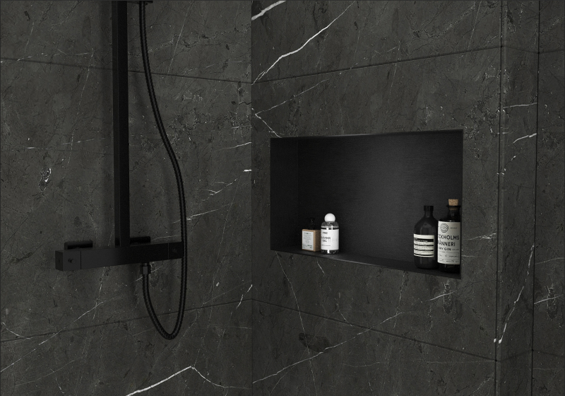 CERANO - Zápustná polička/nika s okrajem do obkladu - černá matná - 90x30x10 cm