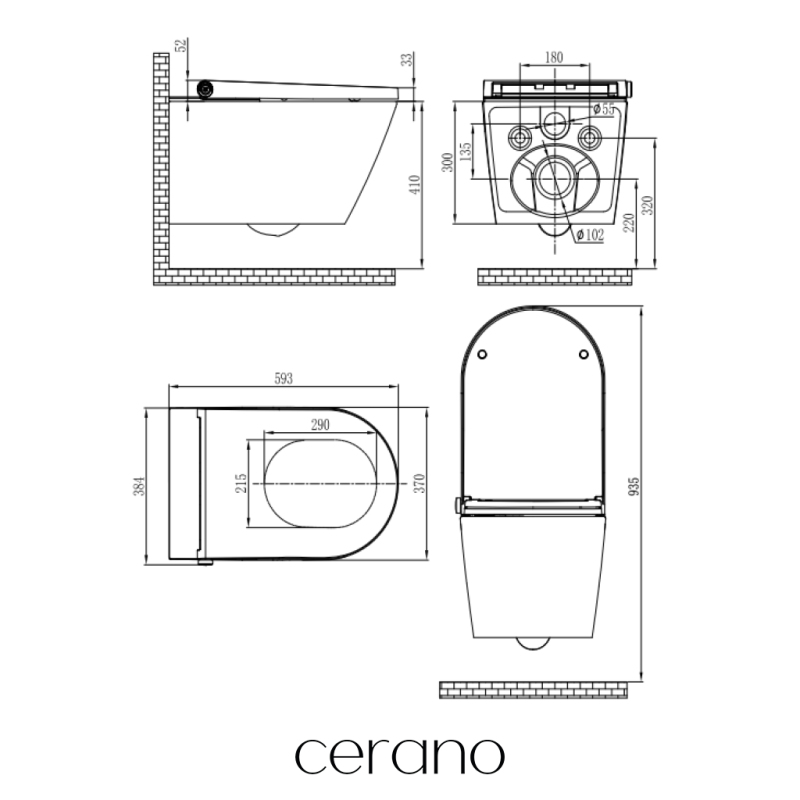 Závěsné WC mísy Cerano se snadno montují díky svým univerzálním rozměrům. Jsou kompatibilní k systémům od známých značek jako Cerano,Geberit, Grohe a Schwab. Díky tomu může být naše WC bez obtíží instalováno do většiny stávajících instalačních rámů, které jsou na trhu.