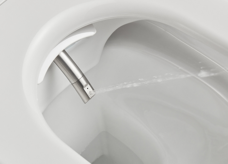 Šetrně čistí teplou vodou jemnými pohyby vpřed a vzad. Intenzitu proudu i teplotu si lze přizpůsobit podle potřeby. Tryska se automaticky čistí před a po každém použití, v klidovém stavu je bezpečně ukryta v sedátku. Pro ruční údržbu ji lze jednoduše vyjmout.